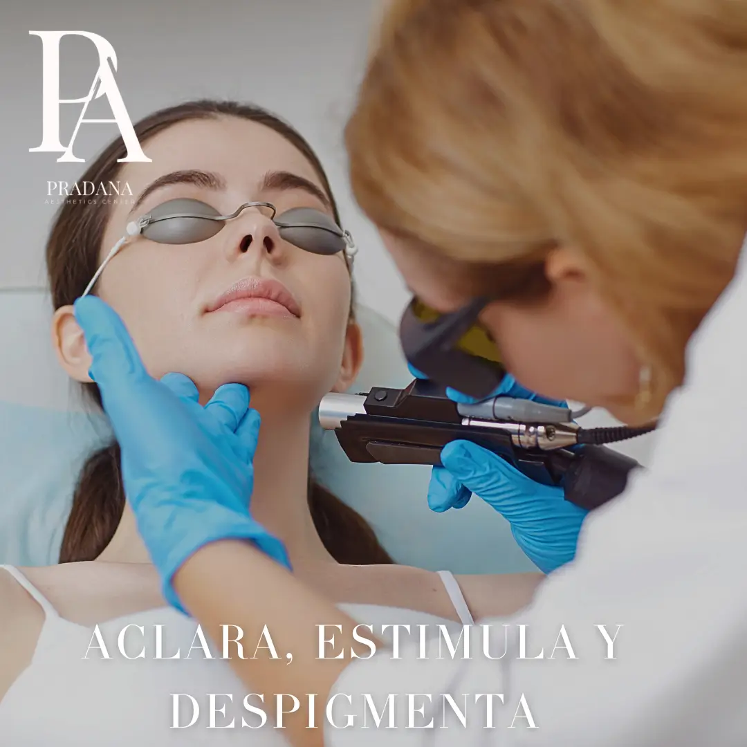 El aclarado de la piel es un procedimiento que se realiza con nuestro láser Q switches ayudando a reducir la pigmentación (oscurecimiento de la piel). Este tratamiento actuará en las capas más profundas de la dermis mejorando sustancialmente la textura de la piel y su tonalidad.